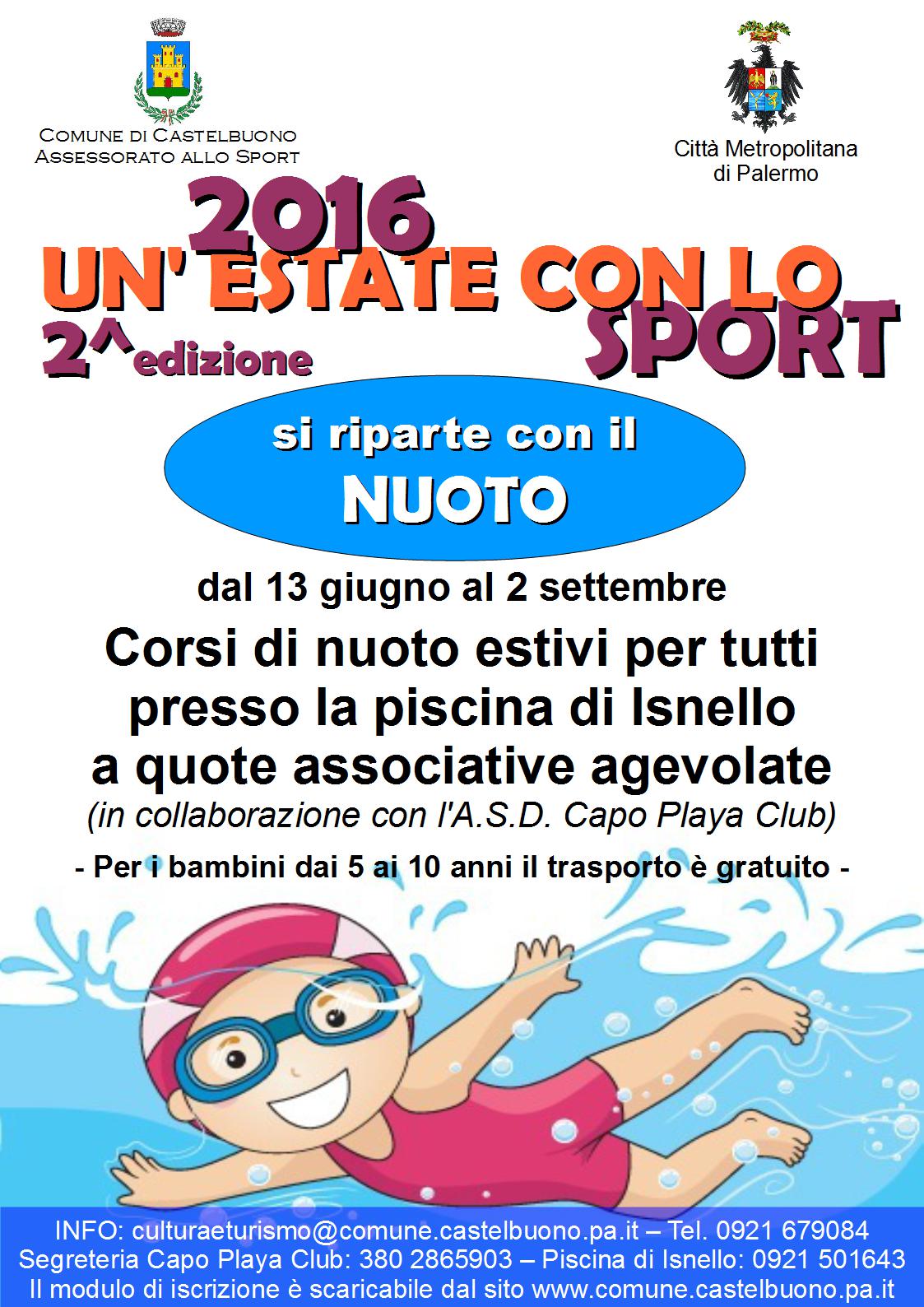 Per i giovani castelbuonesi prenderà il via il 13 giugno 2016 la II edizione di “Un'Estate con lo Sport” presso la piscina di Isnello