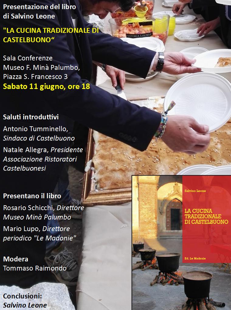 Il prof. Salvino Leone, medico e bioeticista di origini castelbuonesi, attuale vicepresidente del Museo naturalistico “Francesco Minà Palumbo” non finisce mai di stupirci. Dopo avere dedicato diversi testi alla storia e alla cultura del paese, stavolta ha deciso di “prenderci per la gola” realizzando un libro dedicato alla enogastronomia locale dal titolo “La cucina tradizionale di Castelbuono” edizioni “Le Madonie”.