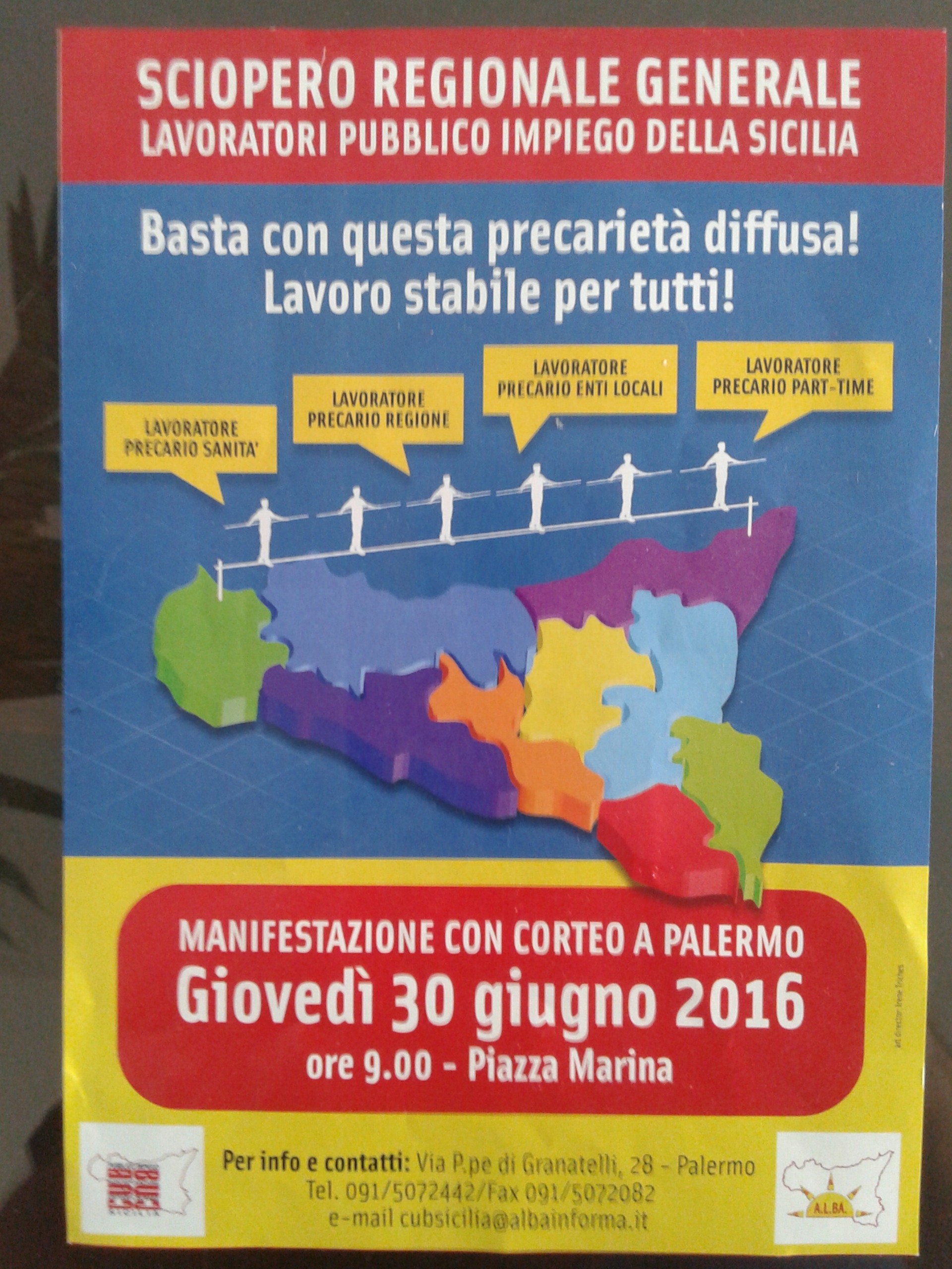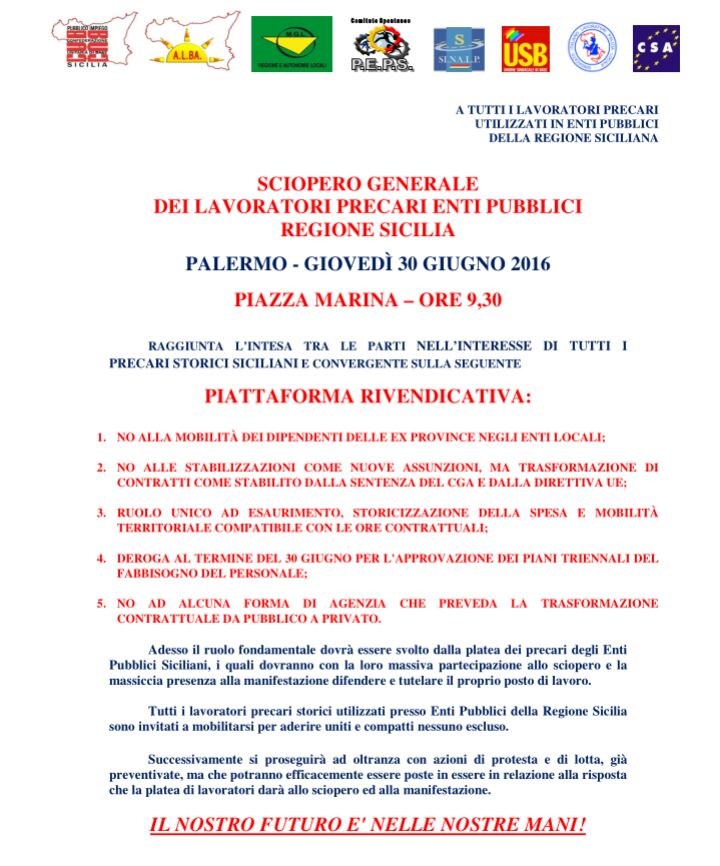 Anche i 110 "contrattisti" del Comune aderiscono allo sciopero generale dei lavoratori precari degli Enti Locali. Manifestazione con corteo a Palermo giovedì 30 giugno 2016