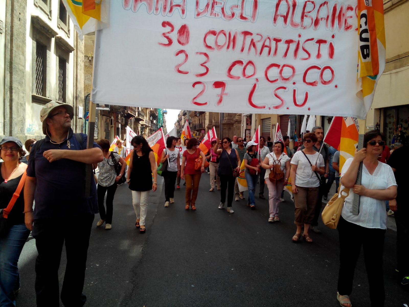 Una partecipazione assai numerosa quella dei “contrattisti” precari che hanno preso parte al corteo con altri colleghi provenienti da tutta l'Isola. Presente anche il sindaco Antonio Tumminello che ha sfilato con la fascia tricolore assieme ad altri primi cittadini siciliani.