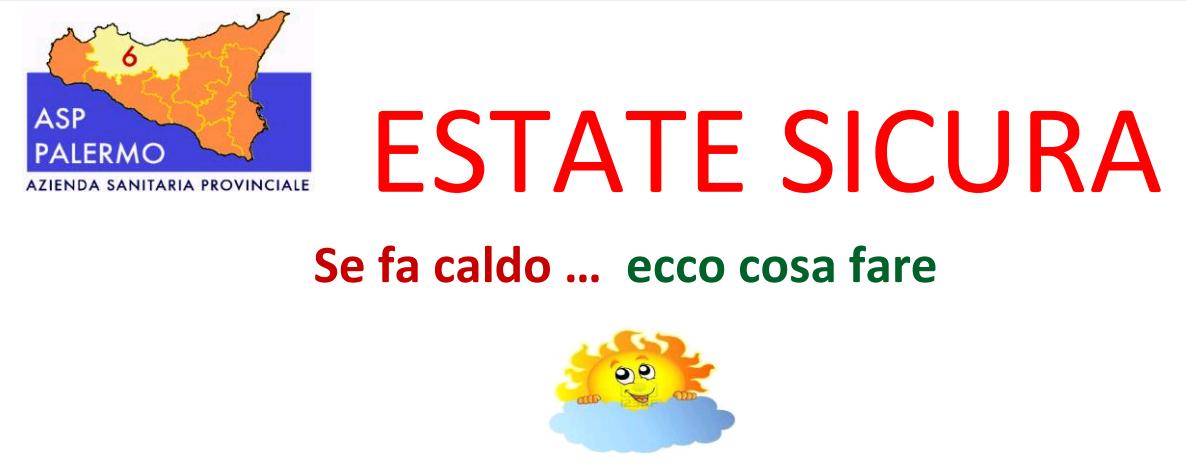Si pubblica in allegato la locandina predisposta dall'ASP n. 6 di Palermo, con i consigli da seguire in caso di caldo eccezionale ed i numeri di telefono da utilizzare in caso di bisogno o di necessità.