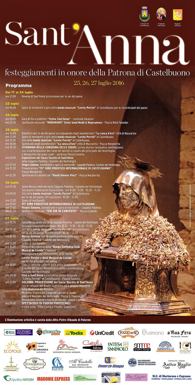 ore 20.30 Inno a Sant’Anna a cura della banda musicale “Loreto Perrini” di Castelbuono - Piazza Castello