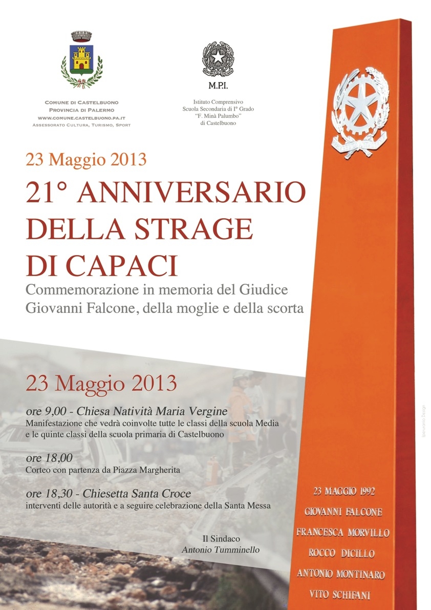Commemorazione in memoria del Giudice Giovanni Falcone, della moglie e della scorta.