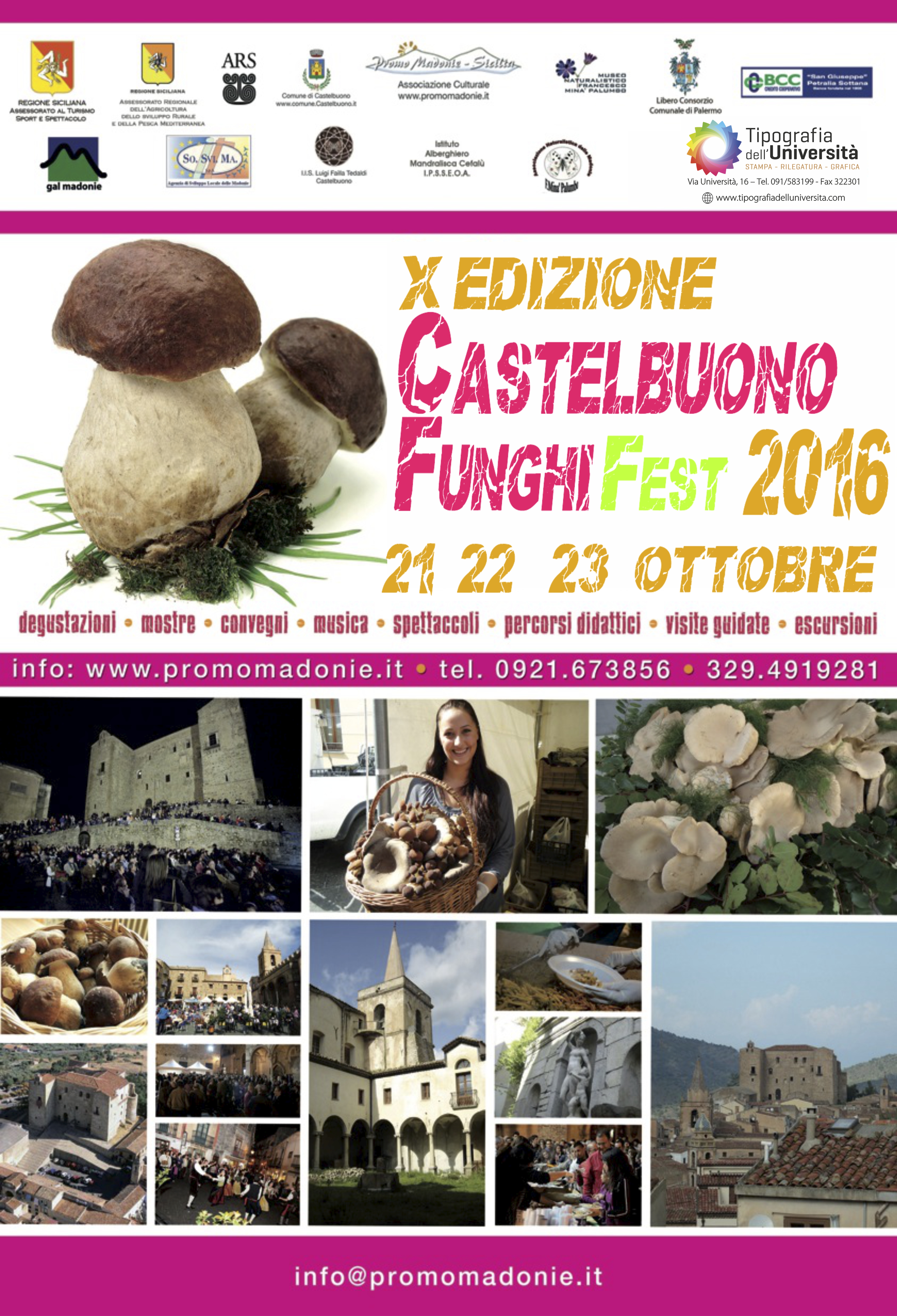 Trionfo di sapori, colori e profumi. E sono dieci. Funghi Fest, taglia quest’anno il traguardo della decima edizione. Dal 21 al 23 ottobre, si rinnova l’appuntamento a Castelbuono, nell’incantevole scenario del Parco delle Madonie, con l’ormai consolidata manifestazione organizzata dall’Associazione Culturale “Promomadonie” con il patrocinio della Regione Siciliana e del Comune di Castelbuono.