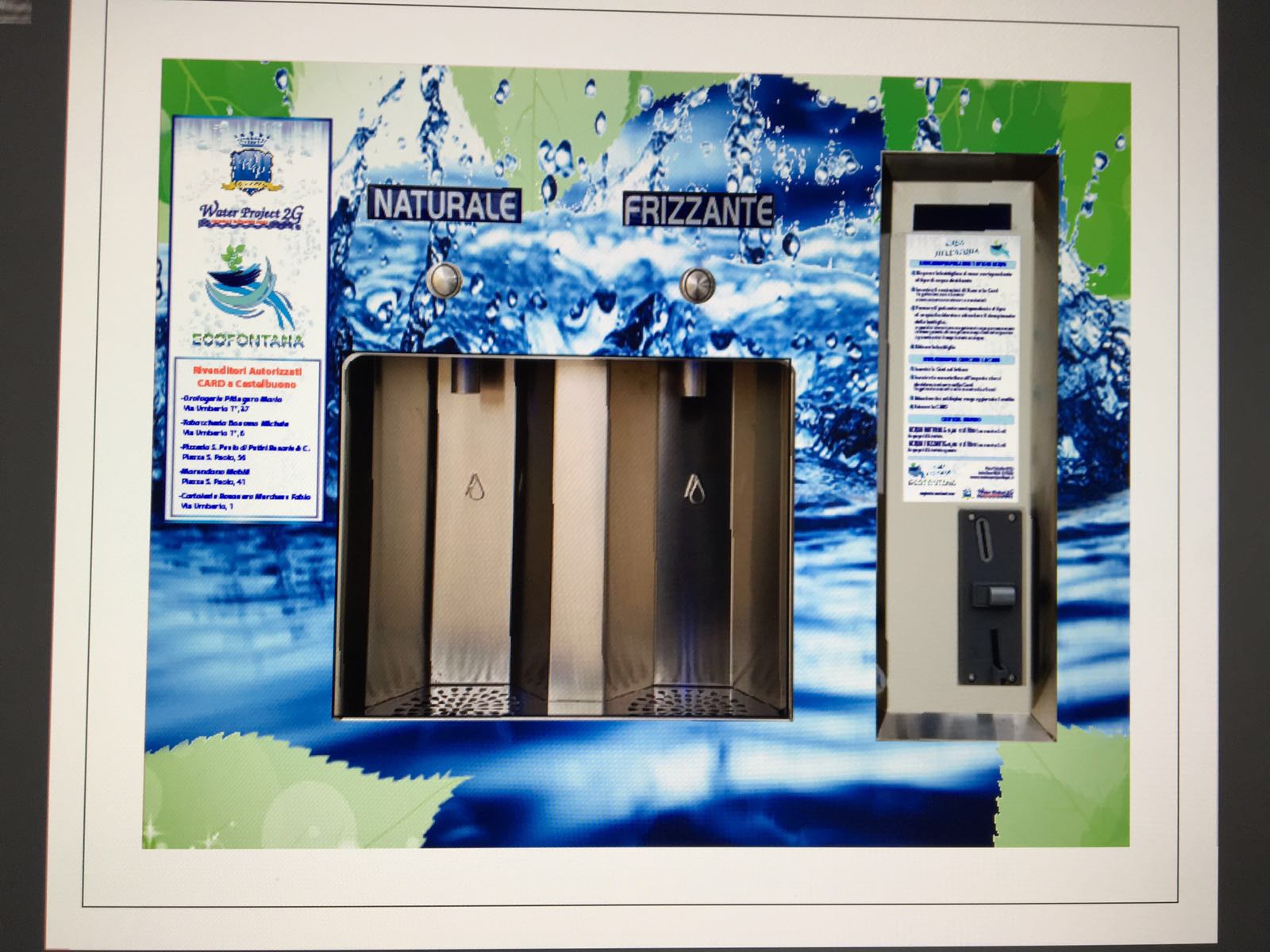 I cittadini a soli 5 centesimi al litro potranno erogare acqua naturale ambiente, naturale fresca e frizzante fresca utilizzando bottiglie di vetro o boccioni. Si può pagare in contanti, oppure acquistare un'apposita card ricaricabile al prezzo di 5 euro con 100 litri di acqua precaricati.