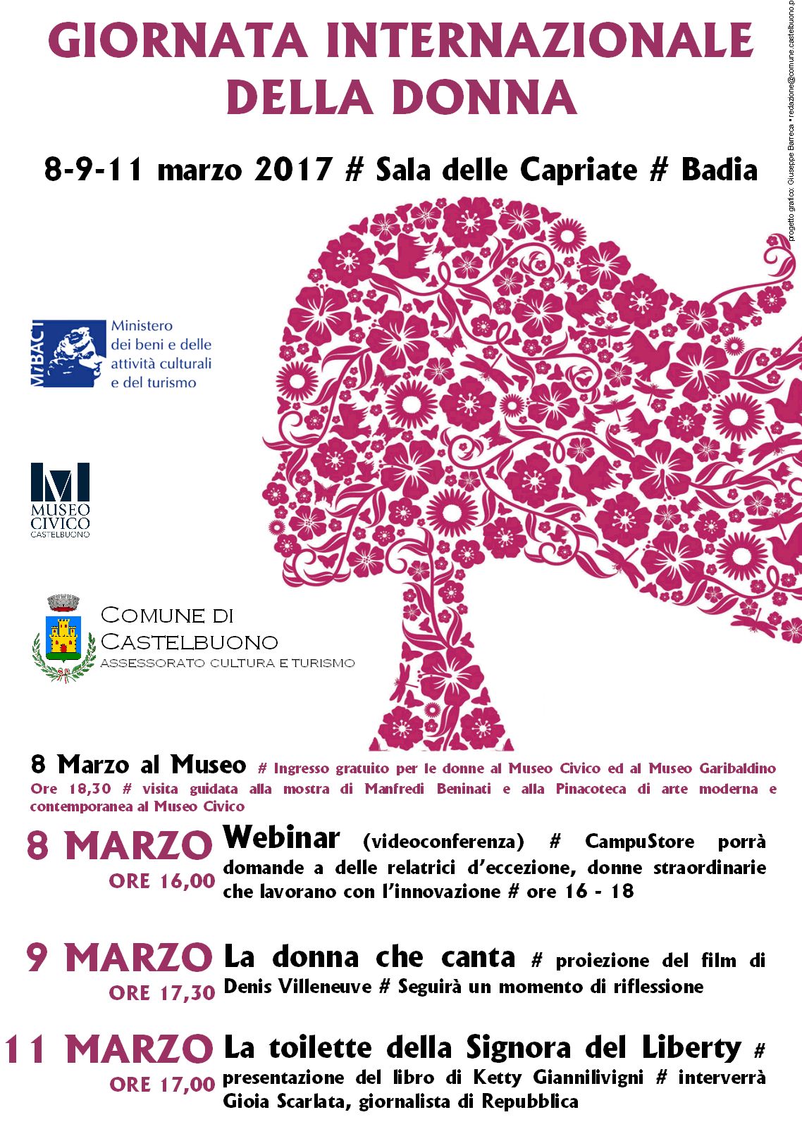 Sempre durante la giornata dell’8 marzo, anche quest’anno, aderendo all’iniziativa del MIBACT, Ministero dei Beni e delle Attività e del Turismo, è previsto per le donne, l’ingresso gratuito per tutta la giornata, al Museo Civico presso il Castello dei Ventimiglia e al Museo Garibaldino presso l’ex Carcere in Piazza Margherita.