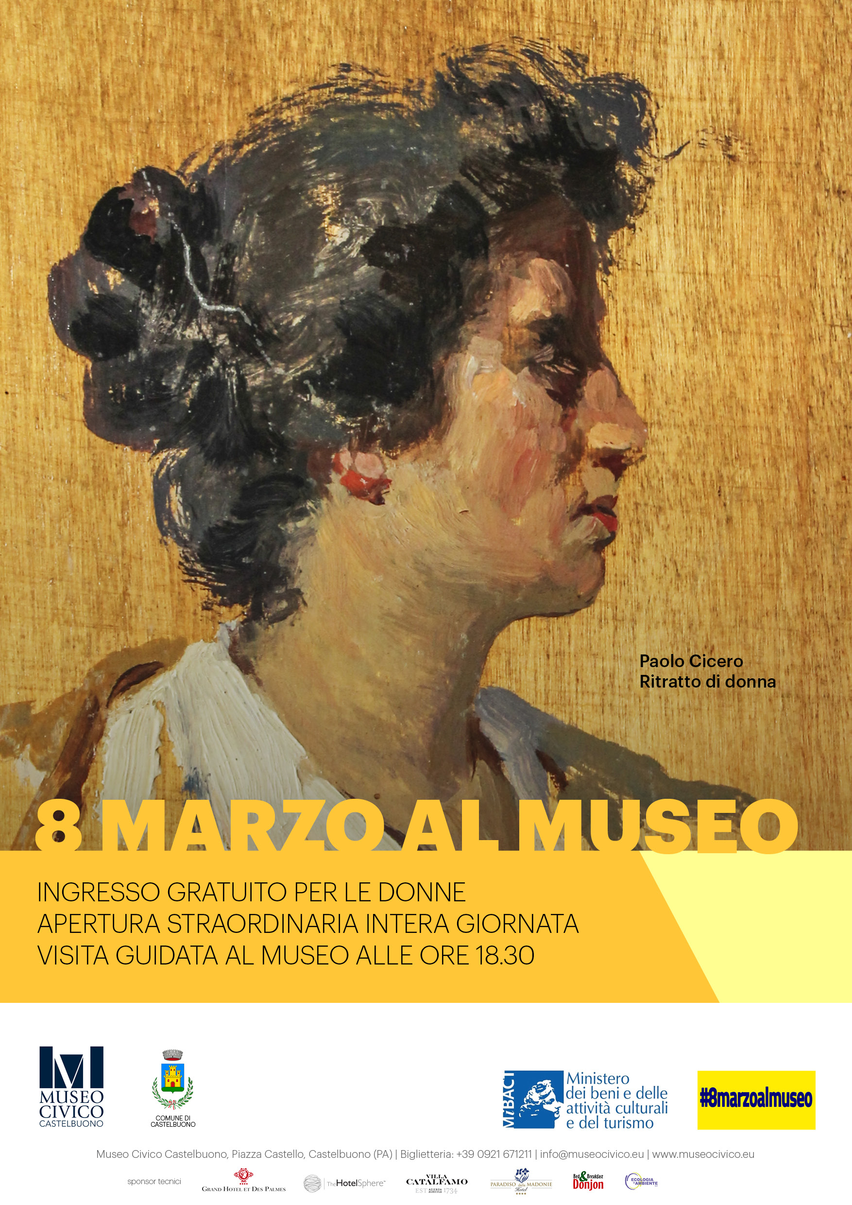 Mercoledì 8 marzo 2017 il Museo Civico di Castelbuono aderisce all’iniziativa del Ministero dei Beni e delle Attività Culturali e del Turismo per la Giornata Internazionale delle Donne, #8marzoalmuseo. A sostegno di una importante iniziativa nazionale, il Museo Civico annuncia l’apertura straordinaria, sia la mattina che il pomeriggio di mercoledì 8 marzo 2017, e l’ingresso alle donne sarà gratuito per tutta la giornata. Inoltre, alle ore 18.30 la dott.ssa Costanza Carzo farà una visita guidata alla mostra temporanea di Manfredi Beninati e alla Pinacoteca di Arte Contemporanea.