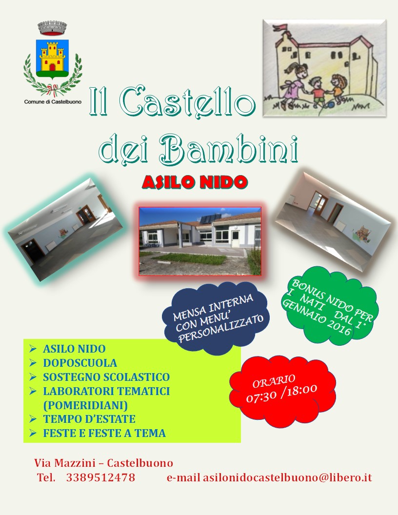 Avviate le selezioni per l'assunzione di personale per l'asilo nido di via Mazzini, da parte della GEA SOC. COOP. SOC., che accetterà i curriculum vitae dei candidati, da inviare alla casella di posta elettronica asilonidocastelbuono@libero.it entro il 21/05/2017.