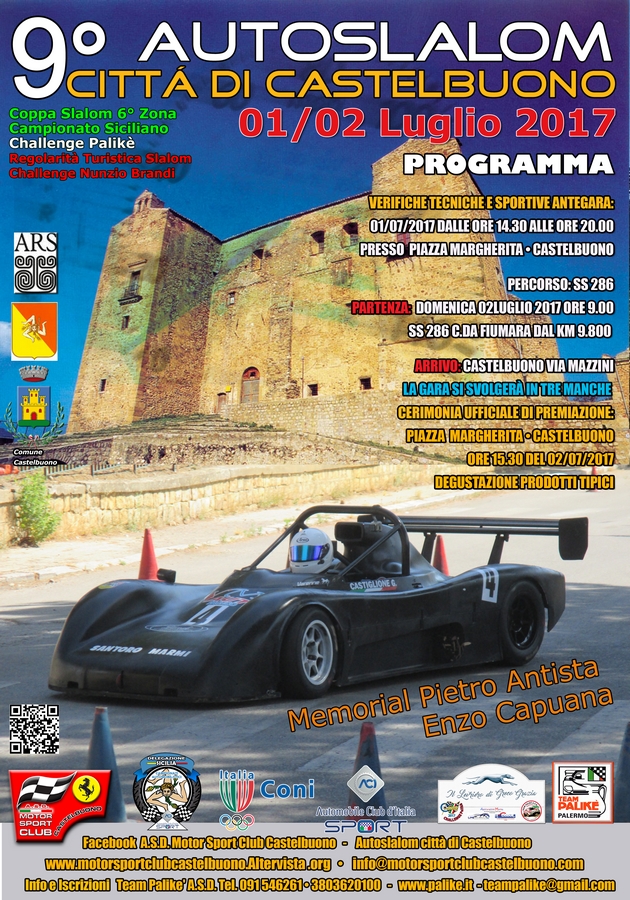 Il gruppo A.S.D. Motor Sport Club Castelbuono, con la collaborazione del Team Palikè e delle attività commerciali di Castelbuono, ha organizzato il 9° Autoslalom città di Castelbuono in programma per i giorni 1 e 2 Luglio 2017.