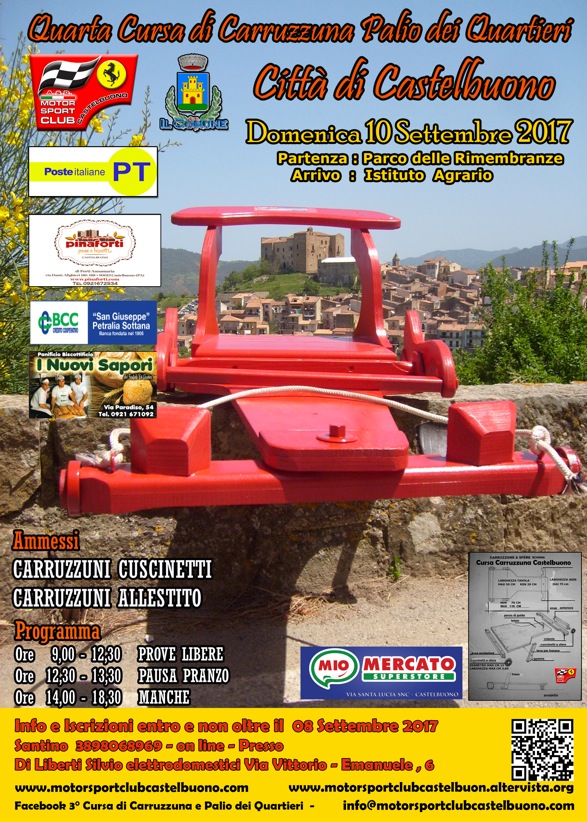 Comunichiamo per evitare perdita di tempo la Domenica mattina (Solo per chi viene da fuori, le iscrizioni si effettueranno Domenica) che si possono ritirare le schede di iscrizioni e consegnarle debitamente compilate entro il 10 Settembre 2017 per la Quarta Cursa di Carruzzuna, presso Di Liberti Silvio, in Via Vittorio Emanuele 6 o chiamate Santino Fiasconaro 3898068969, Contiamo sulla collaborazione di tutti.