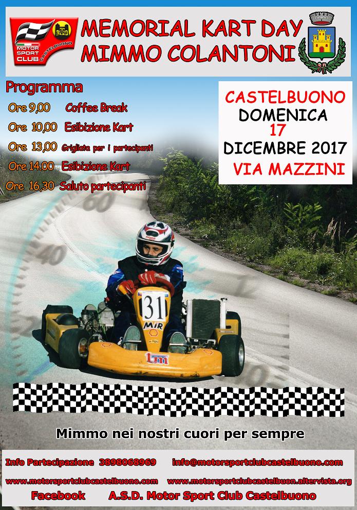 Domenica 17 dicembre in via Mazzini, il Motor Sport Club Castelbuono, con il patrocinio del Comune di Castelbuono, organizza il Memorial Kart Day Mimmo Colantoni.