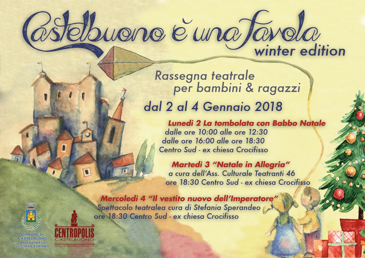 "Castelbuono è una Favola", annuale rassegna teatrale estiva, ritorna per arricchire il palinsesto del programma natalizio: dopo 20 anni del tradizionale evento, si dà il via alla prima edizione di "Castelbuono è una Favola Winter". L'amministrazione comunale con la collaborazione del Centro Polis, organizza tre giornate riservate ai bambini e alle loro famiglie, dedicando loro degli spettacoli ricchi di significato, confermando così l'importanza assunta dal teatro, delineandosi sempre di più come un'importante strumento per stimolare ed incuriosire i più piccoli su tematiche sociali di vario genere, generando al contempo momenti di svago e di divertimento. L'evento si svolgerà dal 2 al 4 Gennaio presso i locali del Centro Sud (ex Chiesa del Crocifisso).