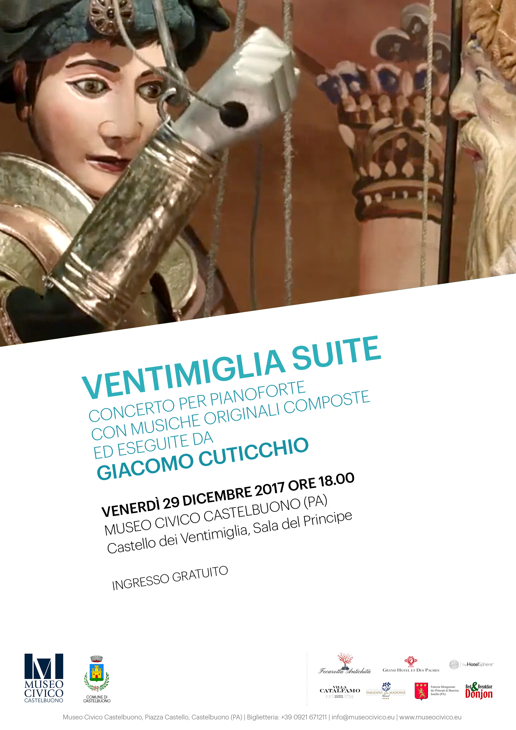 Venerdì 29 dicembre 2017, alle ore 18.00, il Museo Civico di Castelbuono ha il piacere di ospitare il concerto del compositore e pianista Giacomo Cuticchio “Ventimiglia Suite”, nella Sala del Principe del Castello dei Ventimiglia.