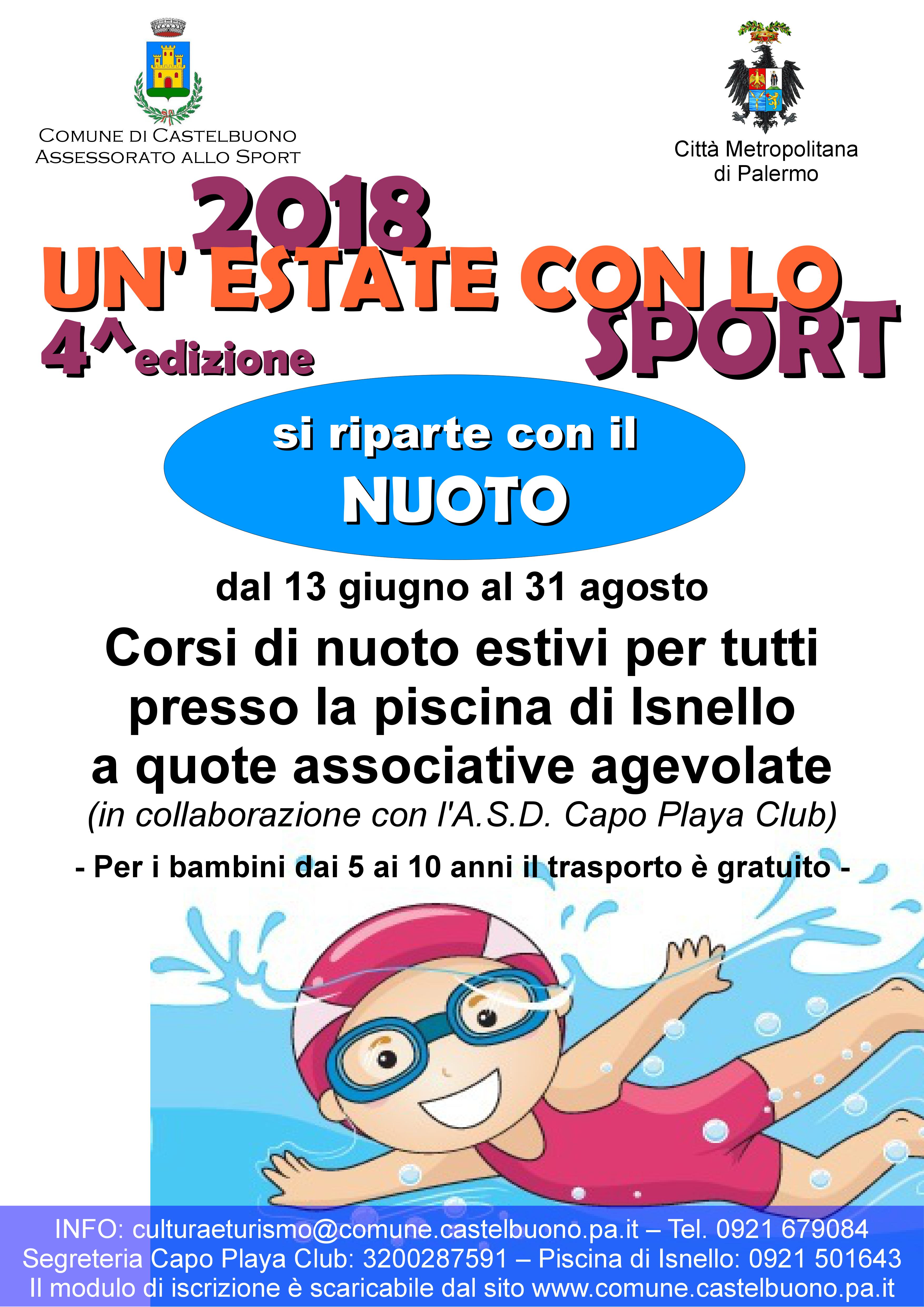 Si inizia, il prossimo 13 giugno 2018, con il corso di nuoto, che tra le varie discipline sportive in modo assoluto è la più completa ed indicata nelle varie fasi evolutive della crescita di bambini e ragazzi.