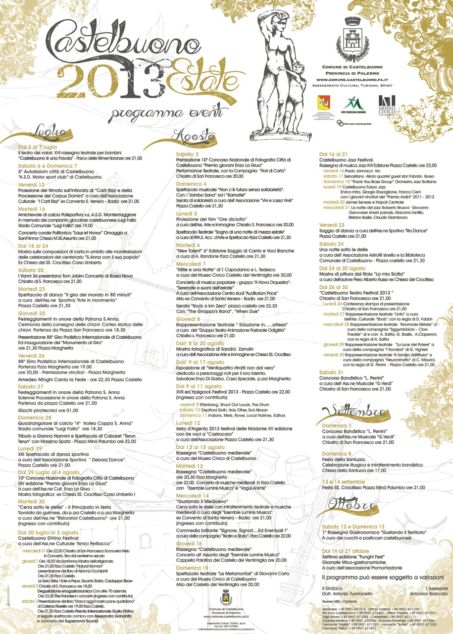 In allegato il programma delle manifestazioni dell'estate castelbuonese 2013.
