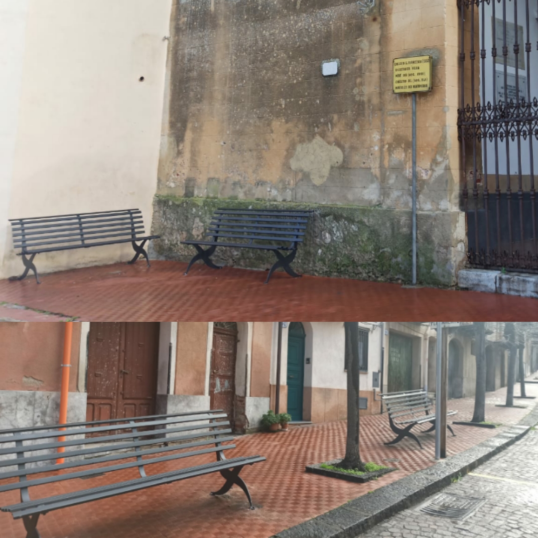 Il Comune sta sostituendo diverse vecchie panchine in giro per il paese, ormai in cattive condizioni e che verranno recuperate; inoltre ne abbiamo installato delle nuove, diciannove in totale, realizzate dal fabbro artigiano Salvatore Cordone che si è aggiudicato e terminato i lavori.