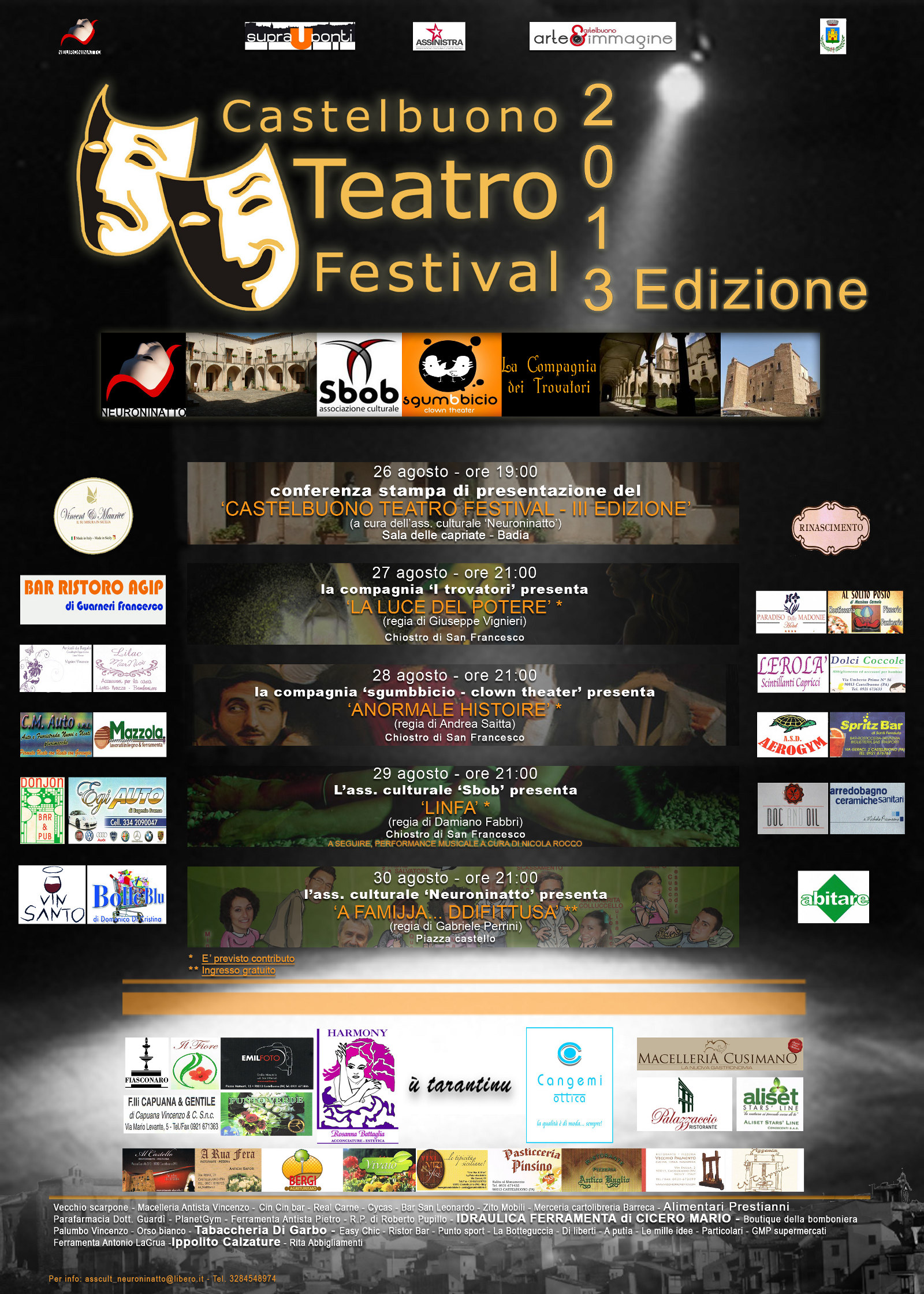 26 agosto ore 21.00 presso “Chiostro di San Francesco”: Conferenza stampa di presentazione della Terza Edizione del “Castelbuono Teatro Festival” in cui verranno presentate le compagnie che prenderanno parte al Festival con i rispettivi spettacoli.