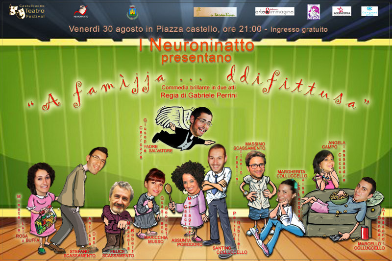 - 30 agosto ore 21.00 presso “Piazza Castello” : La compagnia “Neuroninatto” presenta “A famìjja ddifittusa” regia di Gabriele Perrini