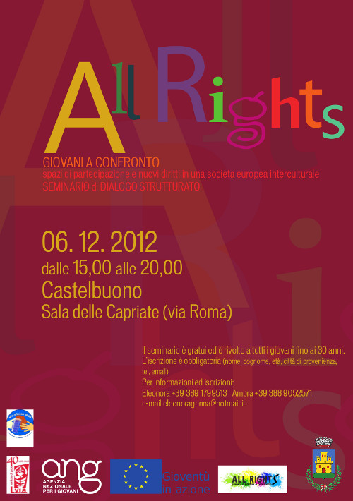 L’Amministrazione Comunale in collaborazione con lo staff di “ALL RIGHTS PALERMO”, all’interno del progetto nazionale “Giovani e decisori politici a confronto: spazi di partecipazione e nuovi diritti in una società europea interculturale”, al fine di favorire il dialogo tra politici e giovani, è lieta di invitare tutti i giovani fino ai 30 anni di età, al talk show sul tema della partecipazione giovanile ed il diritto di Cittadinanza.
