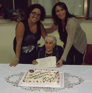 100 anni della nonna Mommina, donna sempre presente, materna, comprensiva, esempio di duro sacrificio e sopportazione ma soprattutto di rara e saggia pazienza.