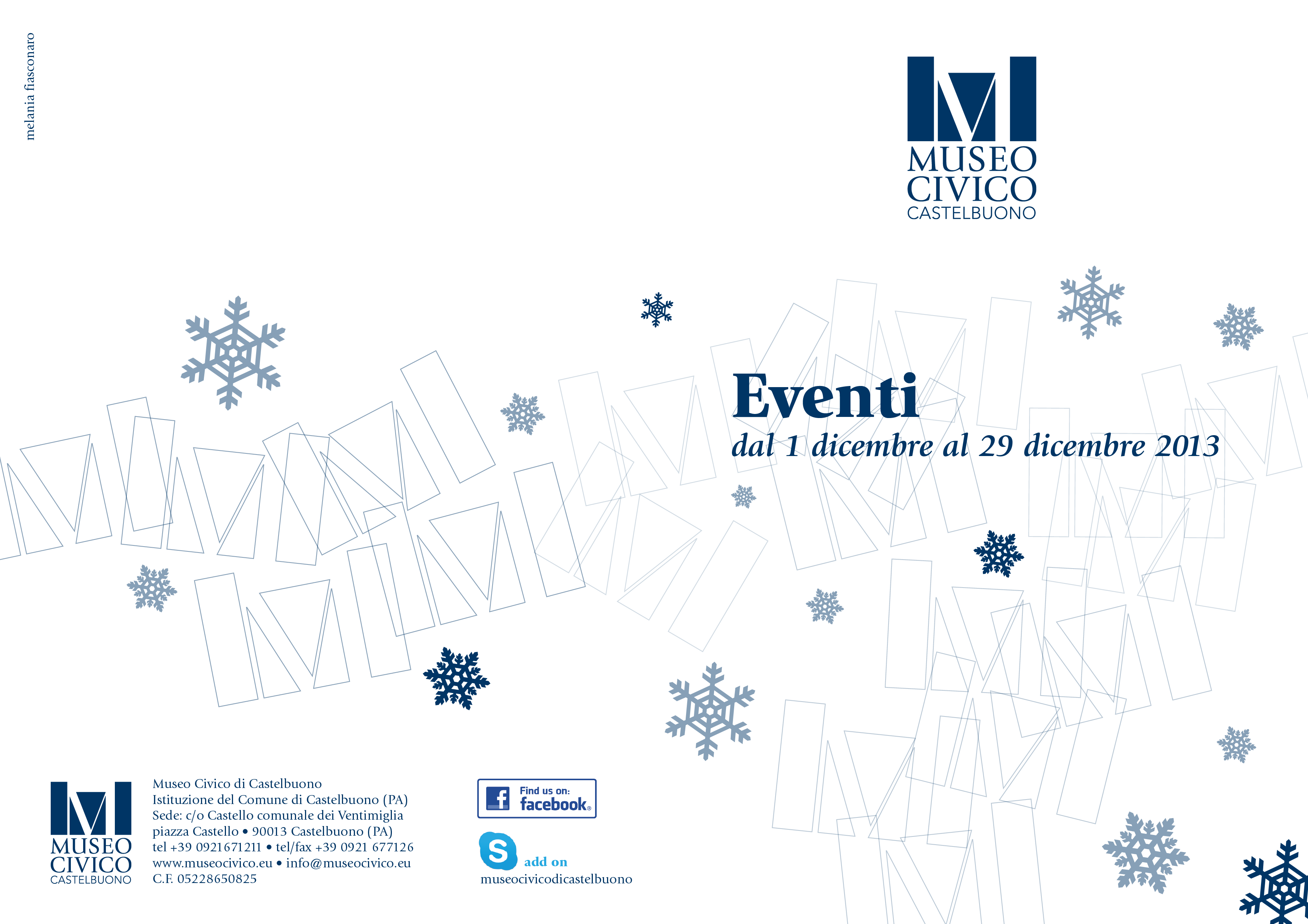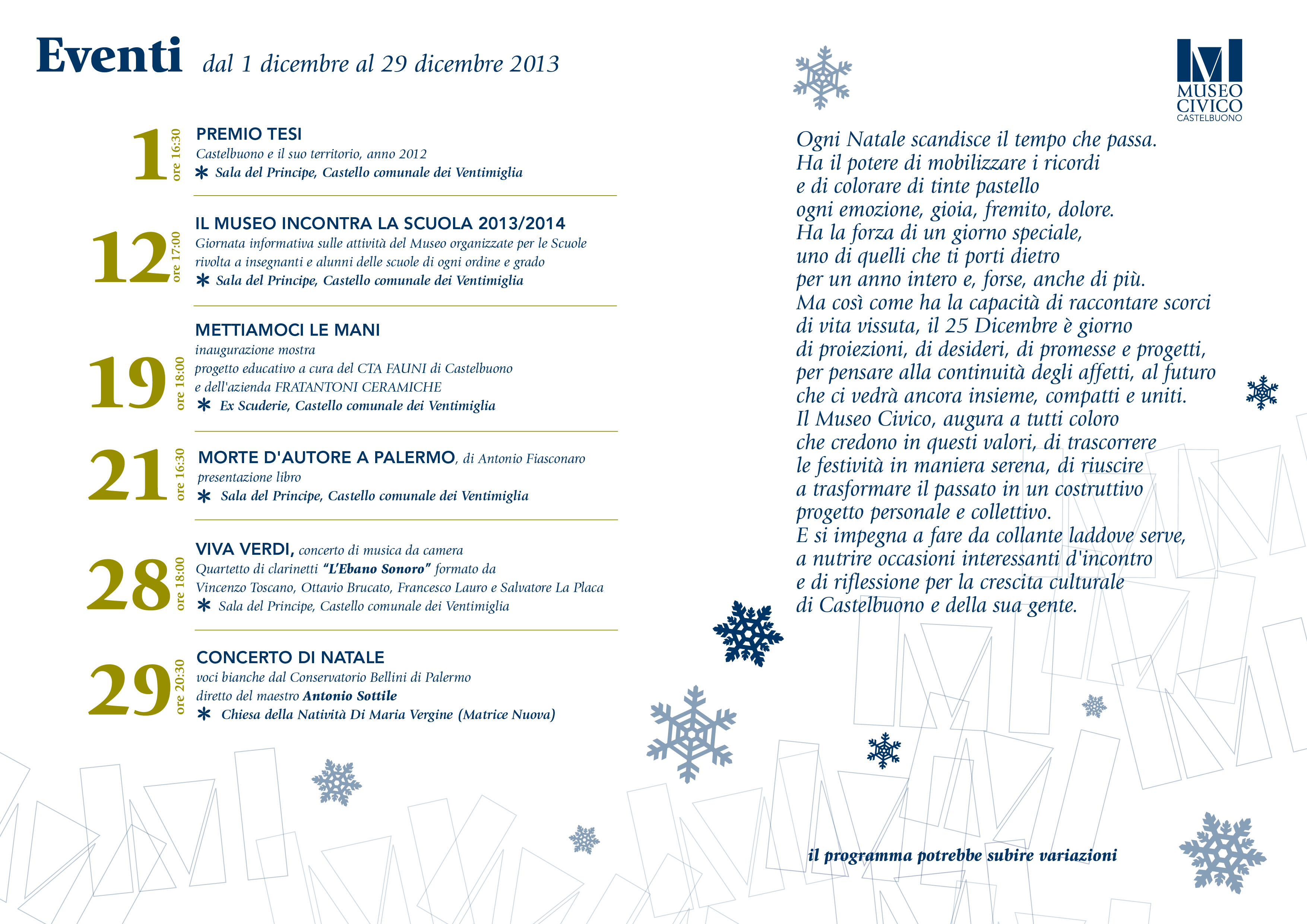 Il Museo Civico, è lieto di presentare il programma degli eventi culturali previsti per il mese di dicembre. Il periodo storico che stiamo vivendo è sicuramente difficile e complicato sotto il profilo sociale, economico e culturale.
