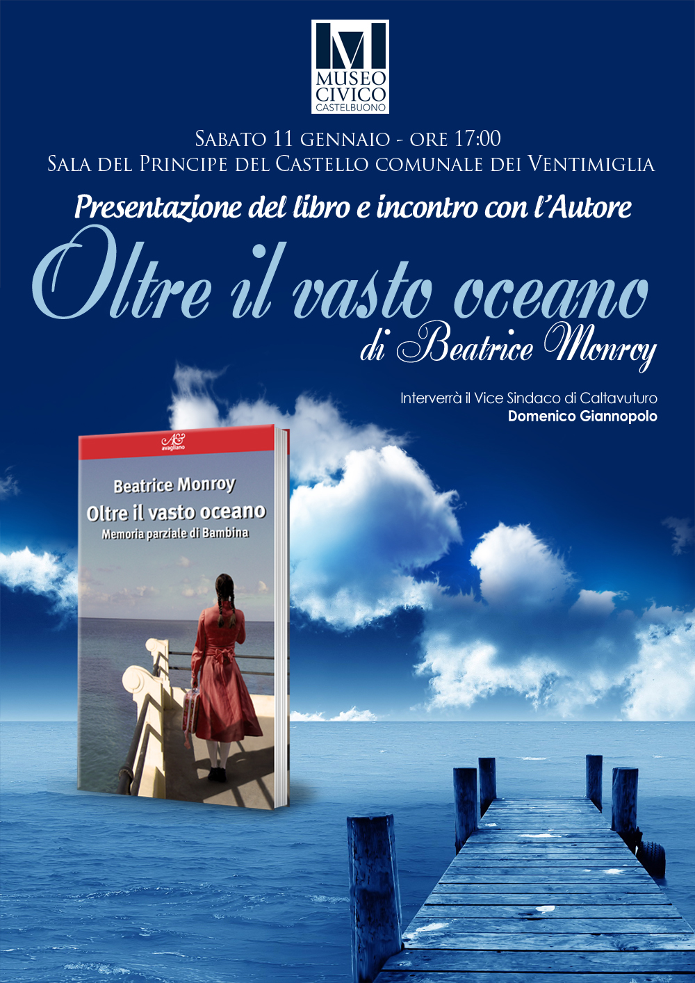 Nell'ambito degli incontri dedicati agli autori, il Museo Civico è lieto di intarVi alla presentazione del libro “Oltre il vasto oceano” della scrittrice siciliana Beatrice Monroy.