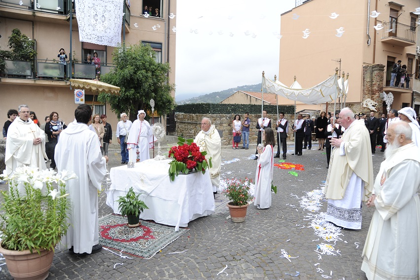 Suggestivi risultano gli altari, addobbati anch’essi con fiori di carta, posti in vari punti del percorso della processione, dove sosta il SS. Sacramento in momenti di intensa ed emozionante preghiera.
