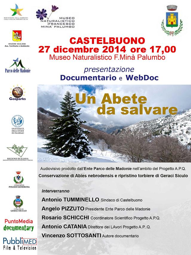 Nell’ambito delle attività connesse al progetto A.P.Q. “Conservazione di Abies nebrodensis e ripristino delle torbiere di Geraci Siculo” (di cui è responsabile scientifico il Prof. Rosario Schicchi, Ordinario di Botanica sistematica del Dipartimento di Scienze Agrarie e Forestali dell'Università di Palermo), è stato realizzato un documentario “Un Abete da salvare” relativo alle azioni già eseguite o in corso di completamento.