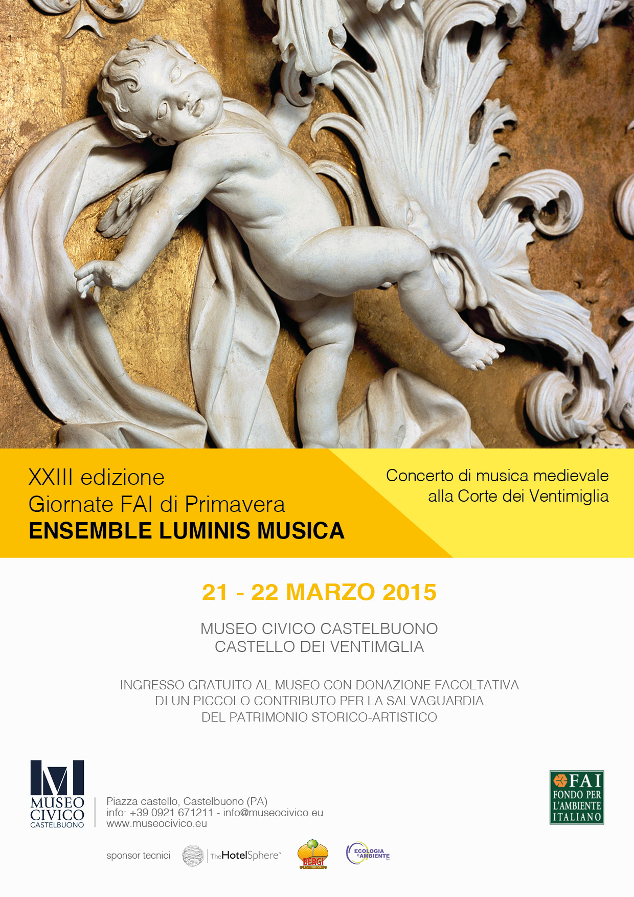 L’Ensemble Luminis Musica di Castelbuono, formata da musicisti e docenti diplomati con consolidata esperienza nell’ambito della ricerca e dell’esecuzione di musica popolare e “colta”, si occupa di recuperare e valorizzare la musica medievale e rinascimentale. Grazie alla collaborazione con il Museo Civico di Castelbuono l’obiettivo è quello di creare una sinestesia tra musica e luogo – in questo caso il medievale Castello di Ventimiglia – in cui questa viene suonata. I concerti si terranno all’interno delle sale espositive del Museo e l’atmosfera storica sarà riscostruita anche attraverso il vestiario medievale utilizzato sia dai musicisti che dalle “guide d’eccezione” costituite, in questa occasione, dai ragazzi delle scuole superiori di Castelbuono.