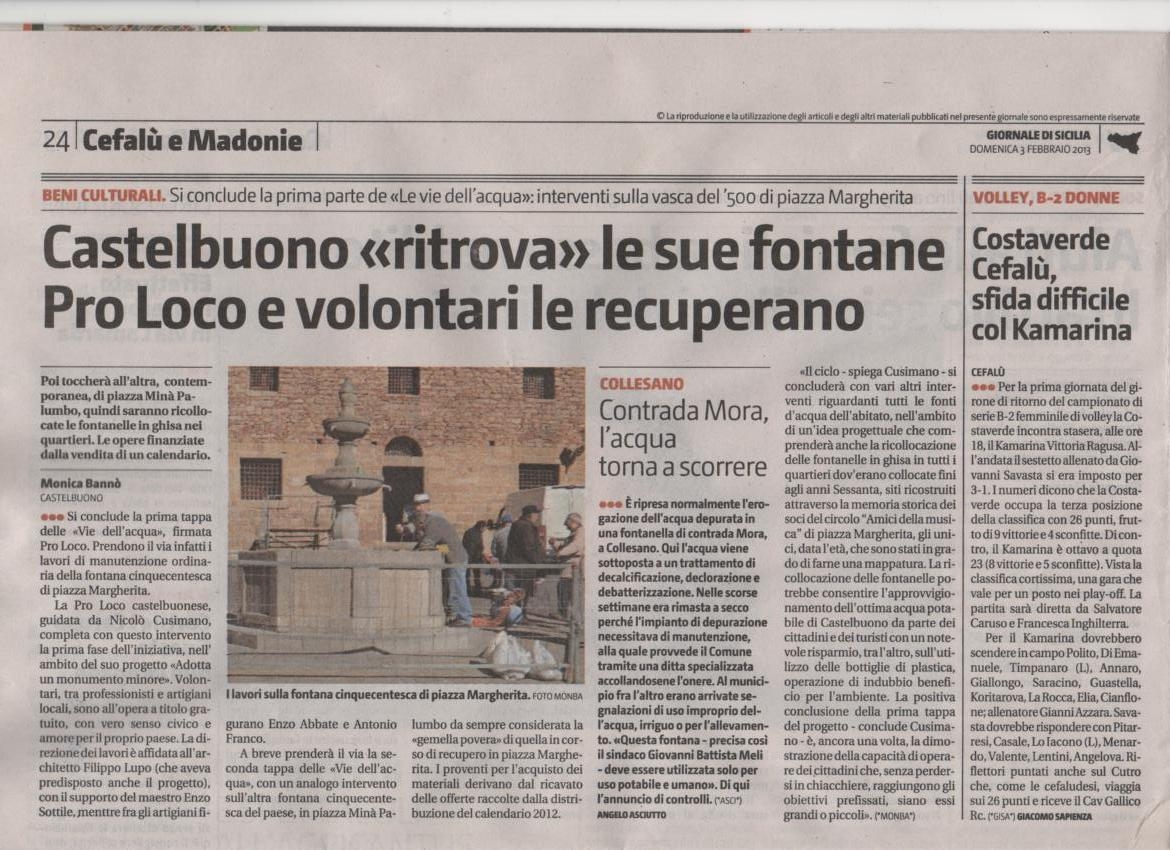 Si pubblica in allegato la pagina del Giornale di Sicilia con l'articolo dedicato all'iniziativa dell'Associazione Pro-Loco di Castelbuono denominata "Le vie dell'acqua".