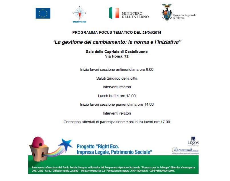 Giorno 29 aprile, presso la sala delle Capriate “Badia” Via Roma 72, Focus Tematico “La gestione del cambiamento: la norma e l’iniziativa”.