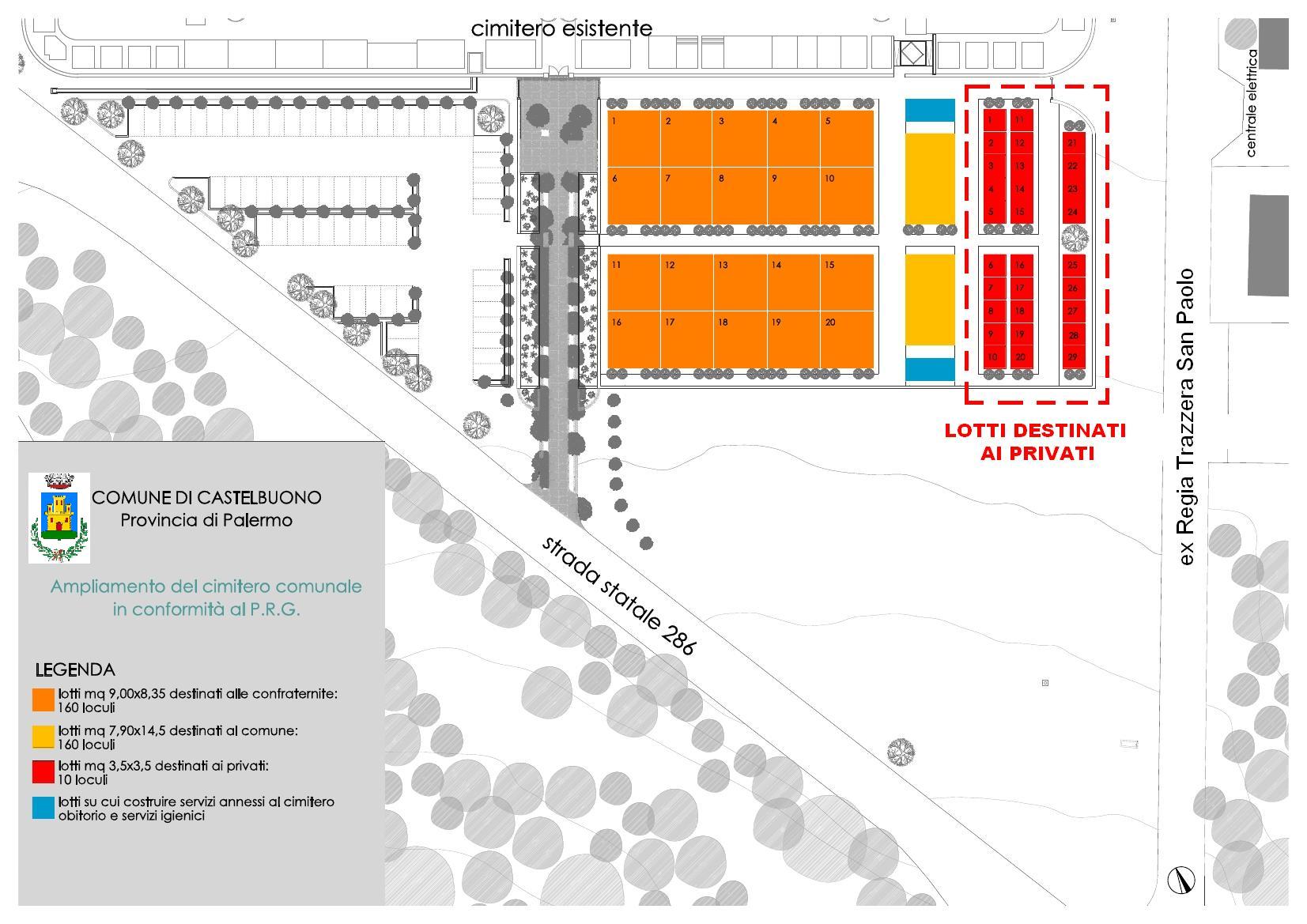 Il Comune di Castelbuono, intende procedere all’assegnazione in concessione d’uso a titolo oneroso di n. 29 lotti cimiteriali da erigersi nell’ampliamento del cimitero comunale posto ad est del cimitero stesso e individuati nell'allegata legenda.