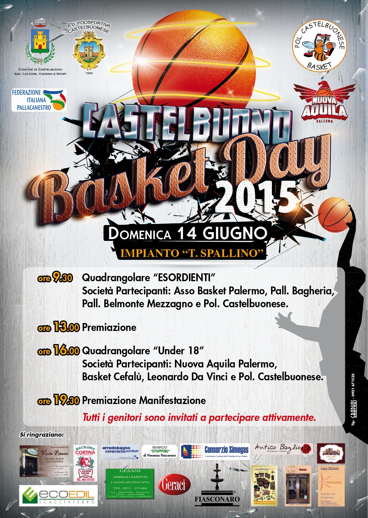 Anche quest'anno l'Amministrazione Comunale sponsorizza la 3° giornata del BASKET DAY presso l'impianto comunale polivalente “Totò Spallino” organizzata dalla Polisportiva Castelbuonese Associazione Dilettantistica che si svolgerà giorno 14 giugno 2015.