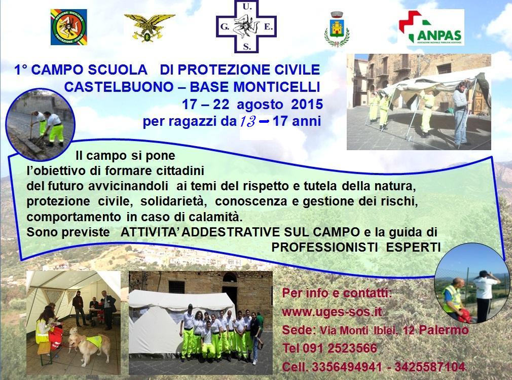 L’Associazione di volontariato U.G.E.S. S.O.S. Palermo organizza quest’anno a Castelbuono, nella suggestiva base dei Monticelli, il 1° campo di protezione civile dal 17 al 22 agosto 2015.