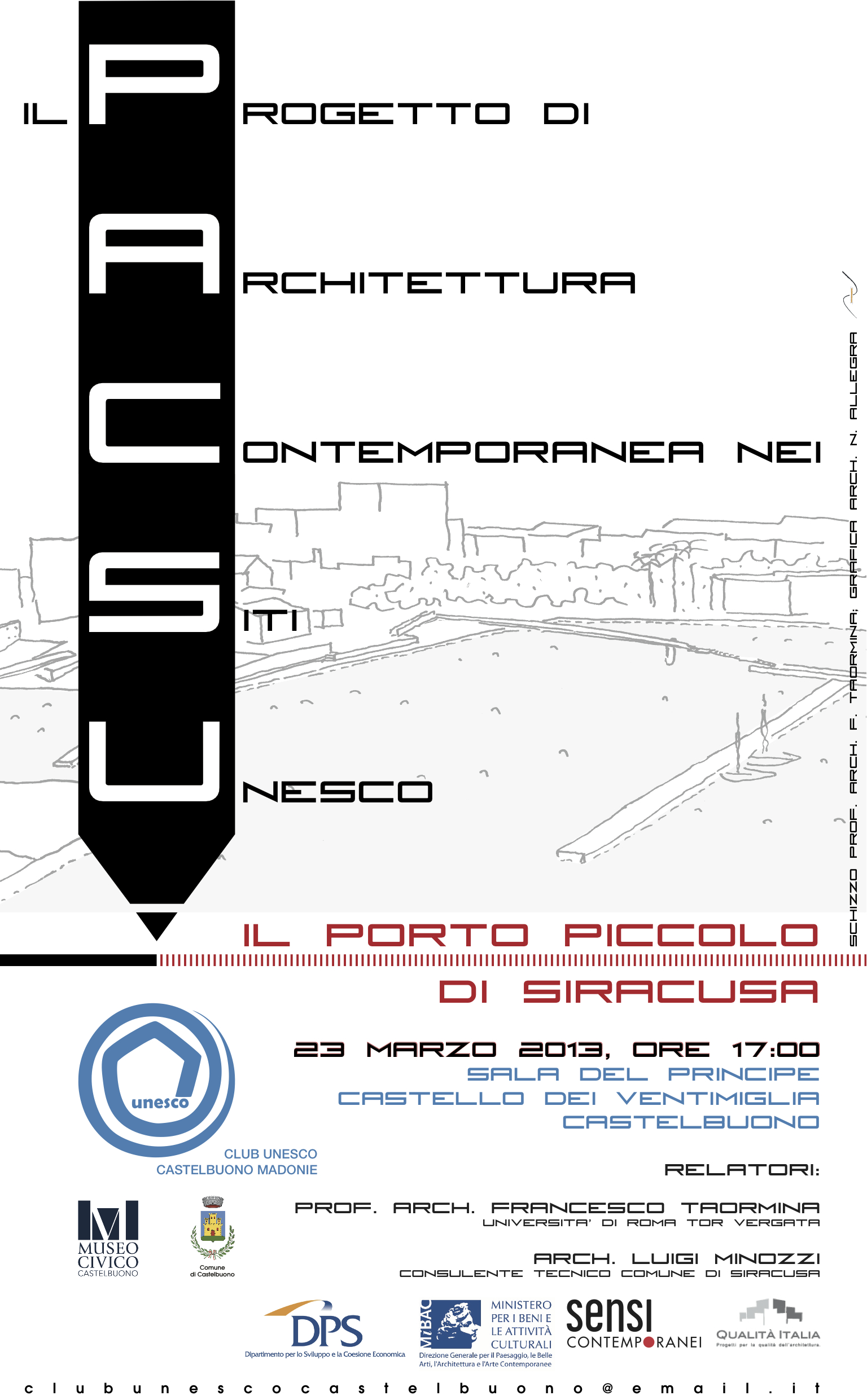 Il Club Unesco Castelbuono Madonie e il Museo Civico di Castelbuono in collaborazione con il Comune di Castelbuono, con il patrocinio del PABAAC-MIBAC (Paesaggio Belle Arti Architettura e Arte Contemporanea del Ministero per i Beni e le Attività Culturali) e del DPS- MISE (Dipartimento per lo Sviluppo e La Coesione Economica del Ministero dello Sviluppo Economico) Vi invitano a partecipare sabato 23 marzo 2013, alle ore 17, nella "Sala del Principe" presso il Castello dei Ventimiglia, alla conferenza dal titolo