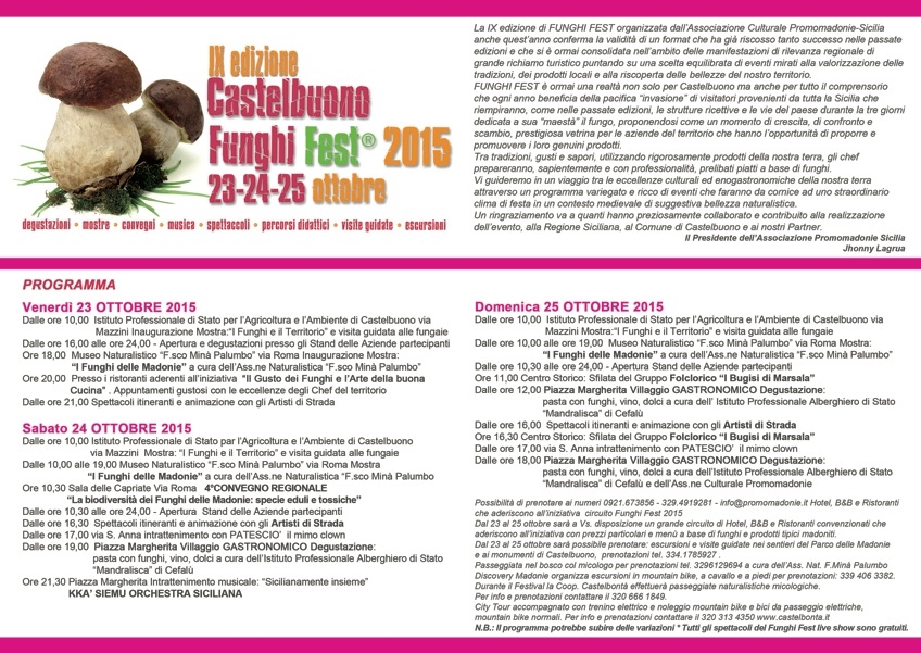 Segreteria organizzativa Funghi Fest: Promomadonie - Sicilia tel. 0921.673856 - 329.4919281 – 334.1785927