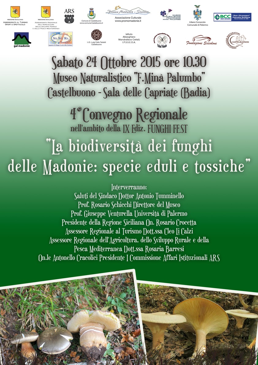 ore 10,30 - Sala delle Capriate Via Roma 4° CONVEGNO REGIONALE - “La biodiversità dei Funghi delle Madonie: specie eduli e tossiche” (per i dettagli si rimanda alla locandina allegata)