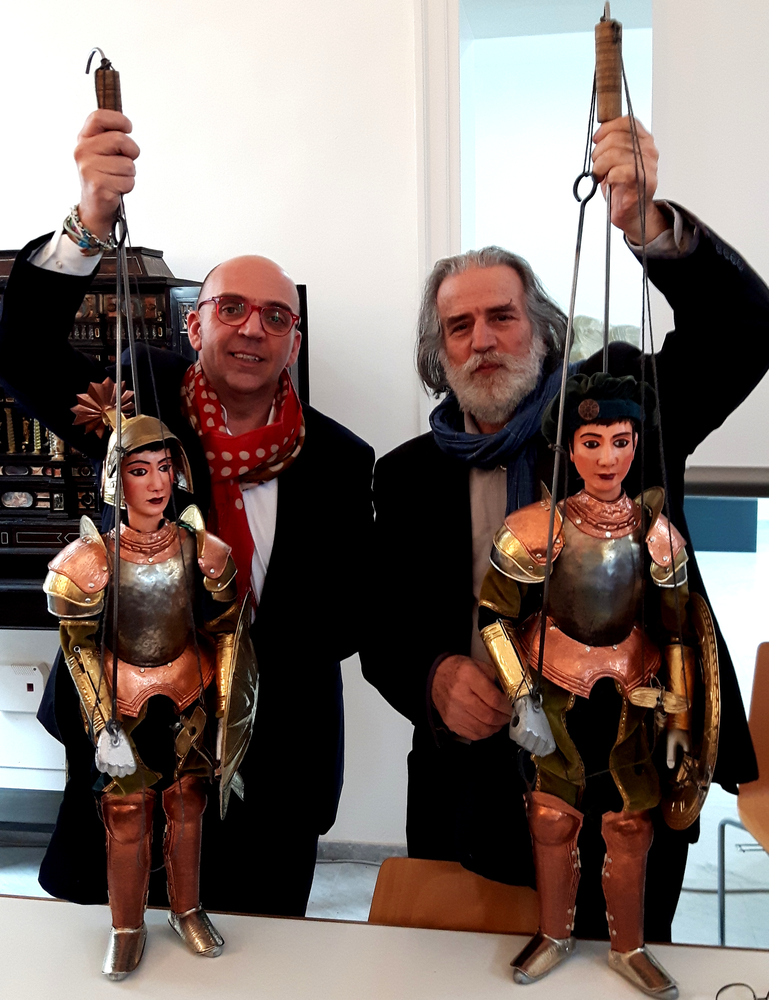 Il sindaco Tumminello e l'assessore alla Cultura Cucco alla presentazione al Museo Salinas del progetto "Tra i sentieri dei Ventimiglia" di Mimmo Cuticchio organizzato dal Museo Civico